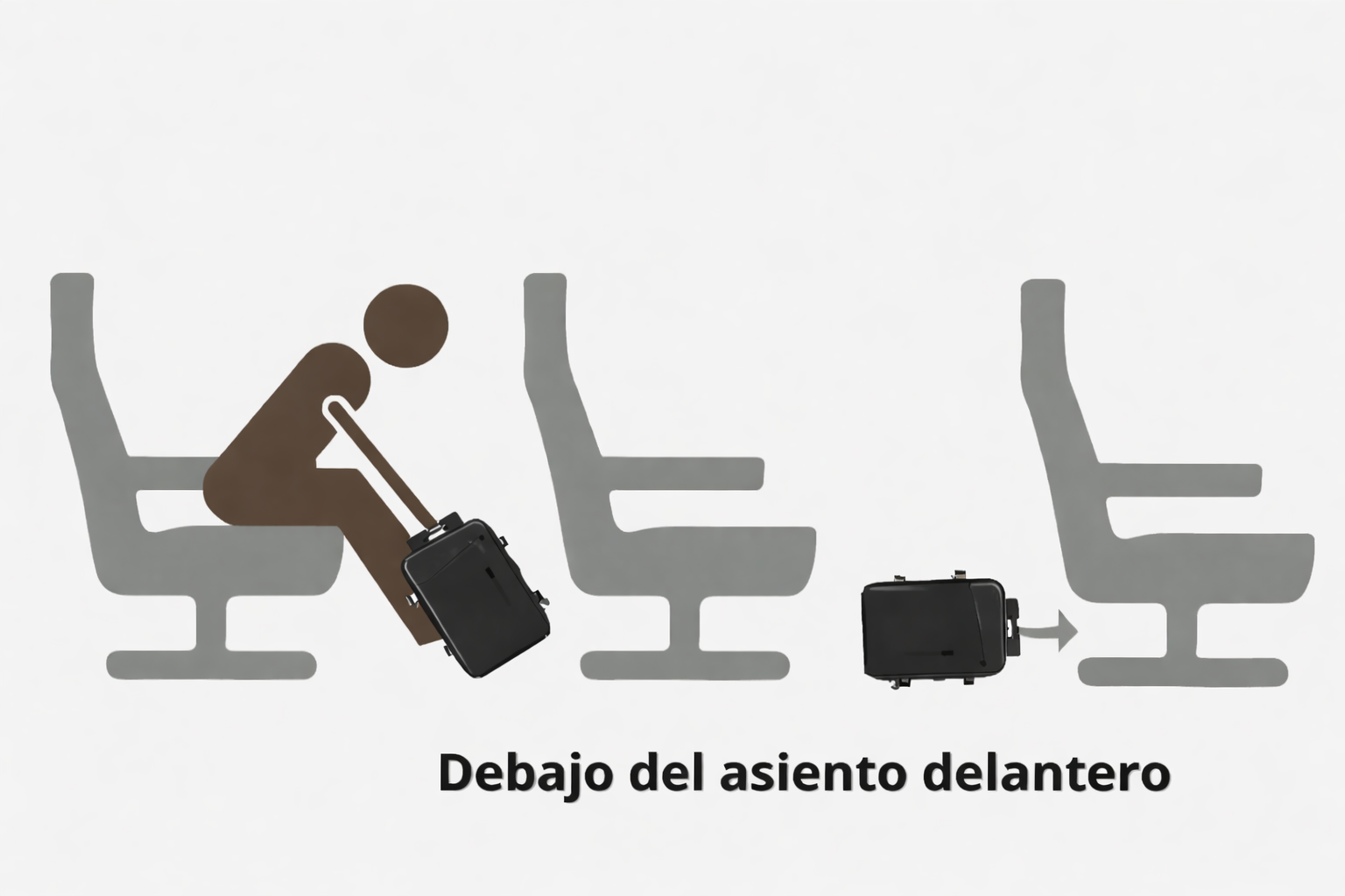 Mochila expandible e impermeable, diseñada para usarse como artículo personal y caber bajo el asiento del avión, sin pagar equipaje extra.